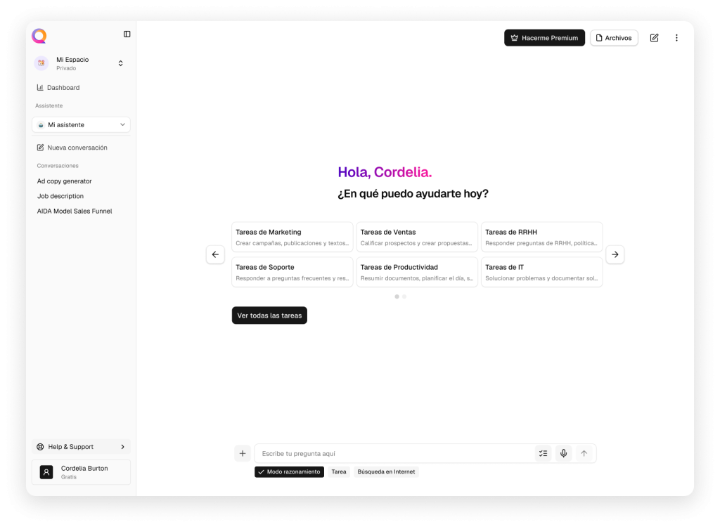 El precio de un asistente virtual varía según la plataforma y el nivel de personalización. Algunas herramientas, como Querix, ofrecen planes escalables que van desde una versión gratuita para pruebas hasta opciones más completas para empresas con alto volumen de consultas y usuarios. Esto permite adaptarse a distintos presupuestos y necesidades.