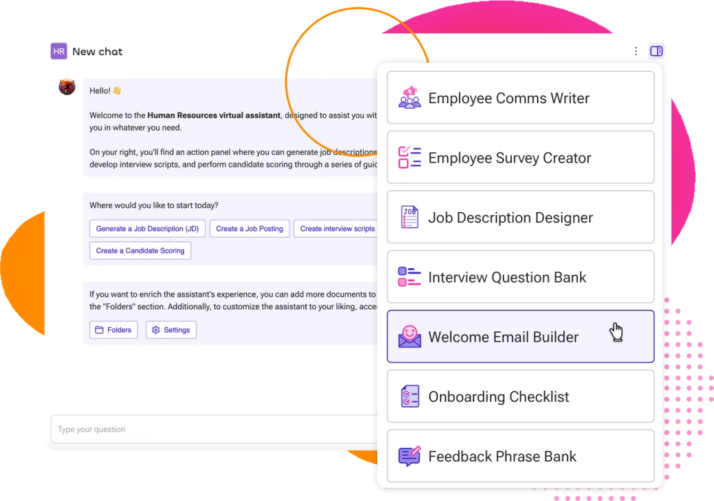 Streamline talent management with tools to create job descriptions, recruitment ads, interview scripts, and candidate evaluations.